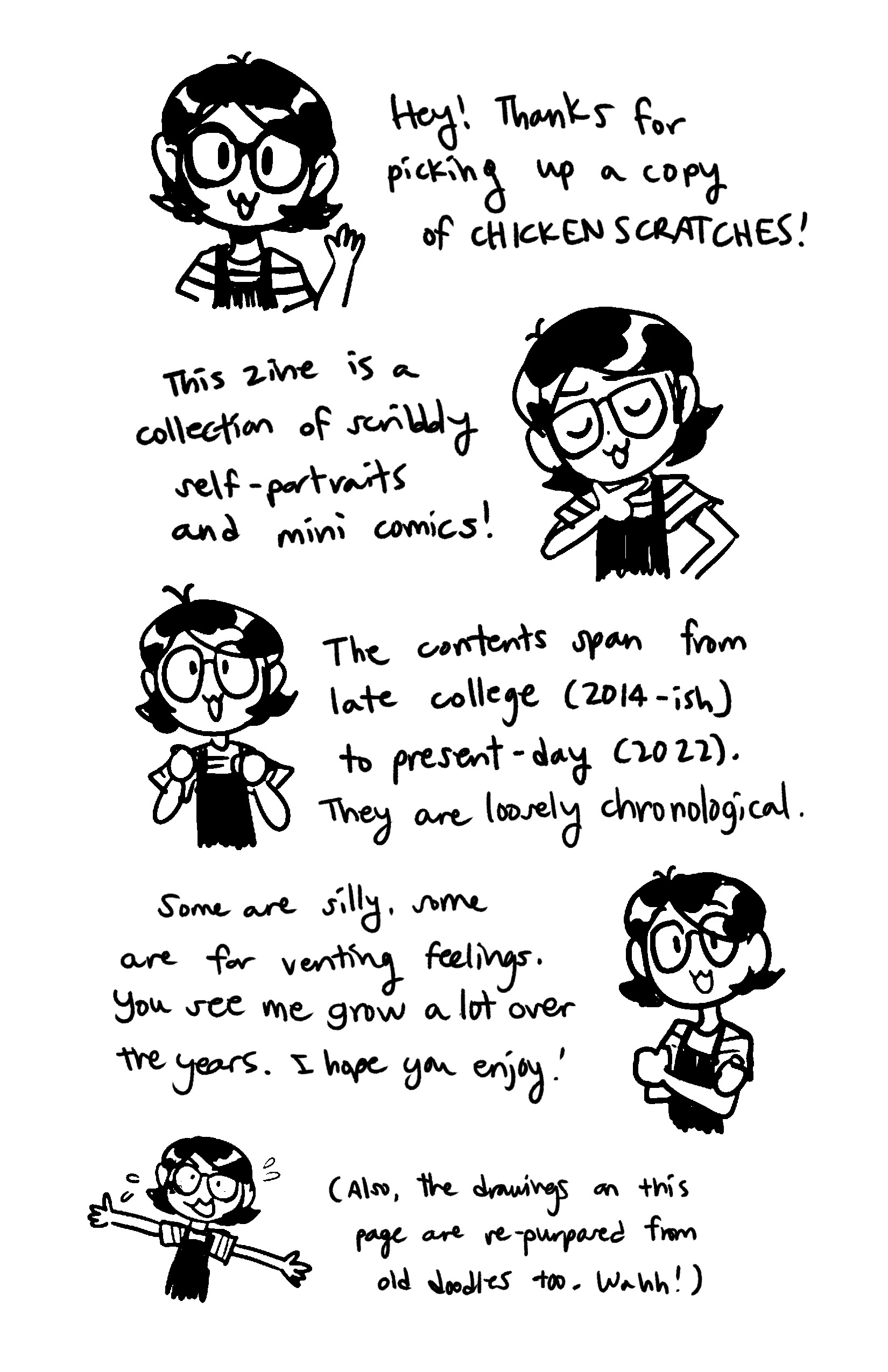 A collection of autobiographical minicomics and doodles spanning roughly 6-8 years, including 5 comics created for Hourly Comics Day.